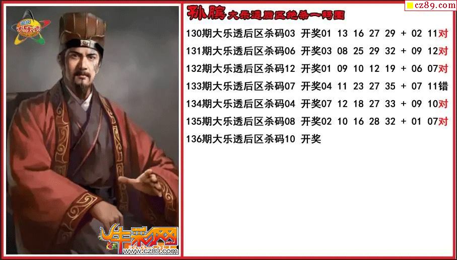 > 大乐透136期孙膑后区绝杀一码图
