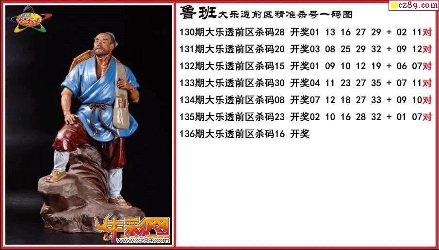 > 大乐透136期鲁班前区精准杀号一码图